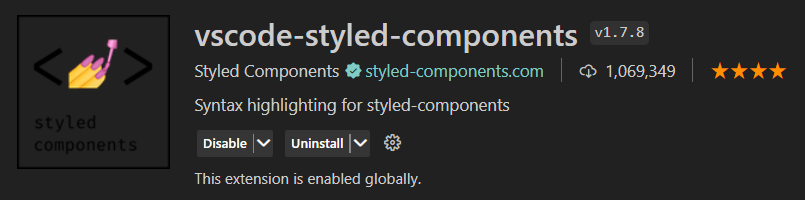 Vs code에서 Extendsions에 vscord-styled-component 설치