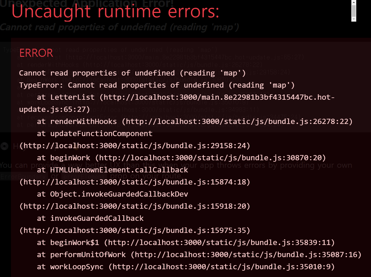 💡letters?.map으로 바꿔주면 letter가 있을때 map을 할 것이기 때문에!! 에러가 사라진다!